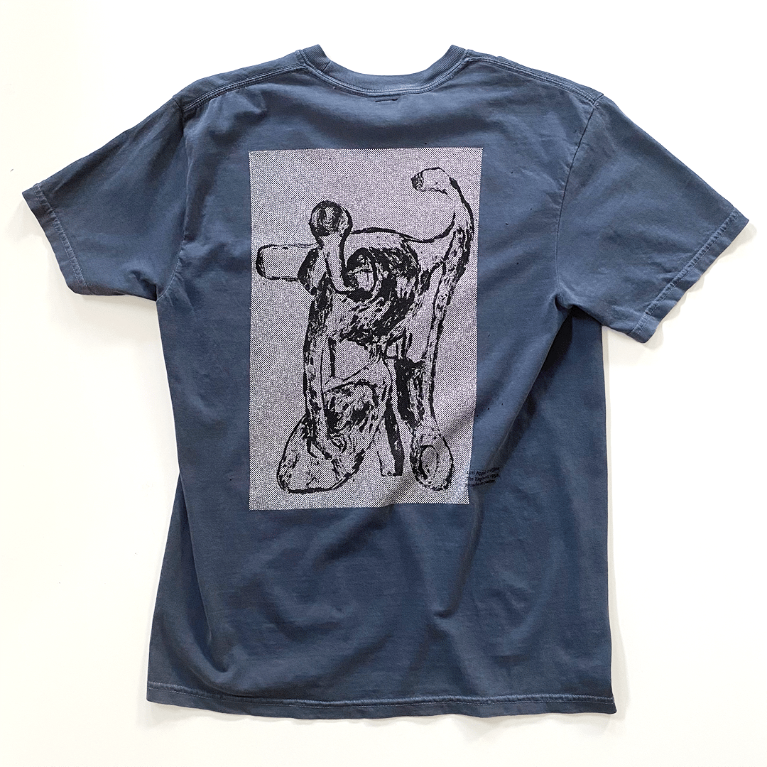 All items are hand printed in our studios in our Portland, OR and Bozeman, MT. Images are painted onto a screen with drawing fluid and screen filler, hand pulled in very short editions. We use water-based ink, with no photochemical process or burning involved, no computer, and no automated print mechanisms. No shirt is without its own individual flaws and will vary slightly from shirt to shirt.